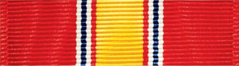 Although in this screen capture it isn’t very clear, this bar is red on the outside, has dark red, white and blue vertical lines and a light orange center. Geometrically, it does not match any existing military service ribbons I could find. However, there are two military service ribbons that are similar, but different. If you combine them, you would end up with the bar on the military’s head. These two ribbons are the national defense service ribbon and the honorable discharge service ribbon. I believe this bar was designed to refer to both, implying that the character is referring to honorable military personnel who are defending the nation. Heady stuff!