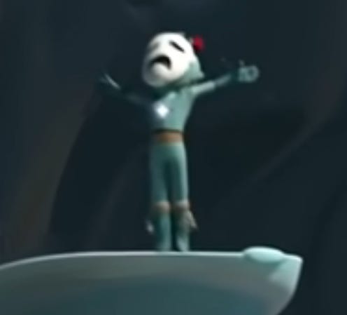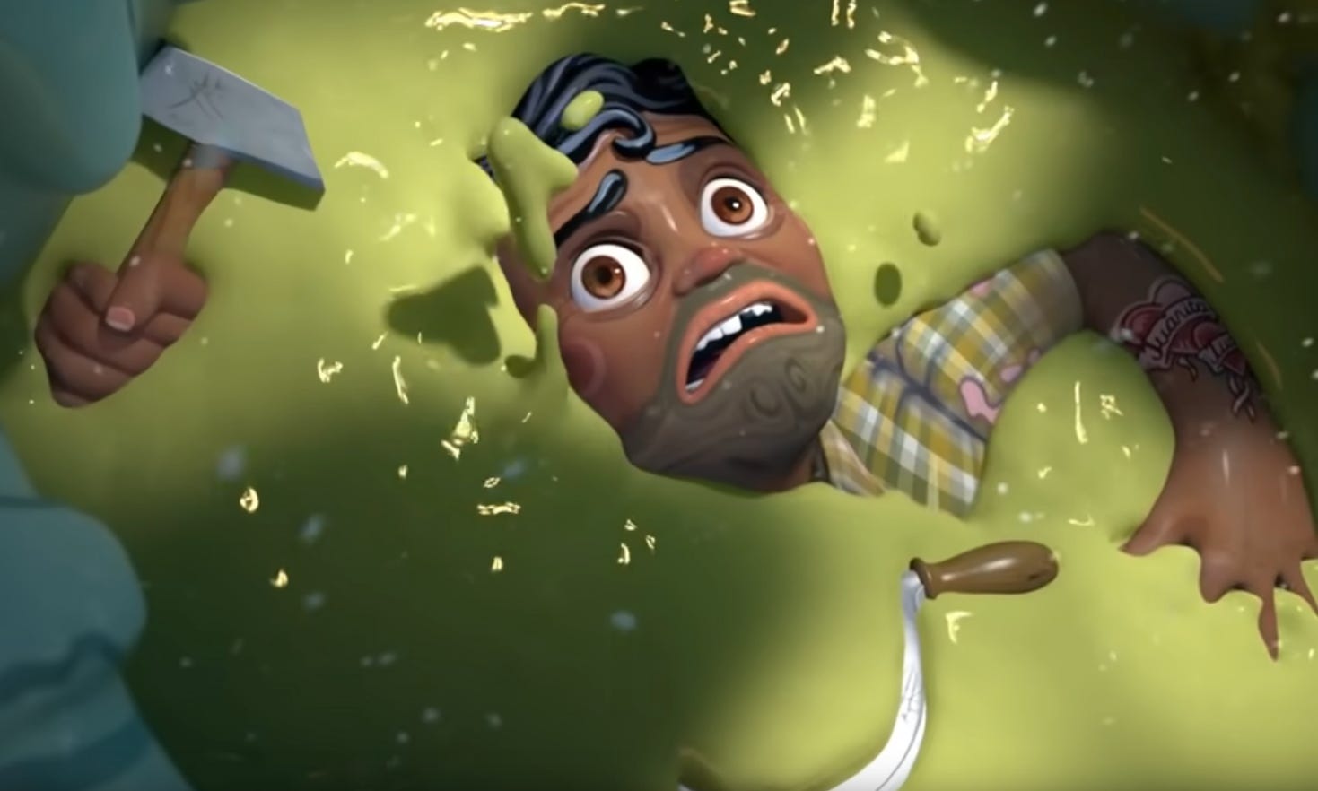 3:32 Pepito drowning - Symbolic of the workers of the world — Pepito is shown drowning in this green goo, emblematic of all of the difficulties imposed by the corrupt system in which we live.