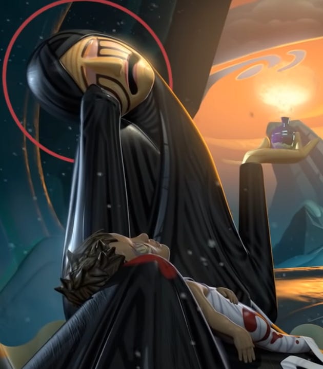 2:39 Clear one-eye Anubis symbolism - The one-eye symbolism is front-and-center as the Anubis boat approaches the viewer. This is the left eye, but I’m not sure that matters here. I think the authors are just reinforcing the whole one-eye symbolism.14